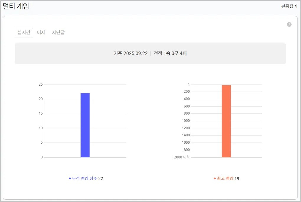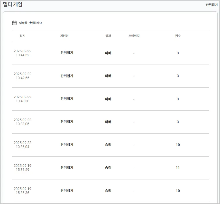 [멀티 게임]에서는 멀티 게임 중, 어느 단계까지 완료했는지와 최종 점수 등을 알 수 있습니다.