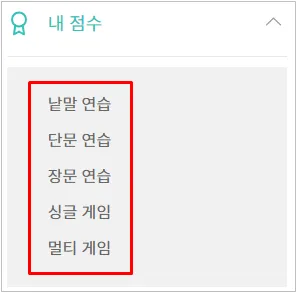 [마이페이지] 좌측 네비게이션 바에서 [내 점수]를 클릭하면 각종 연습 활동 및 게임 점수를 확인할 수 있습니다.